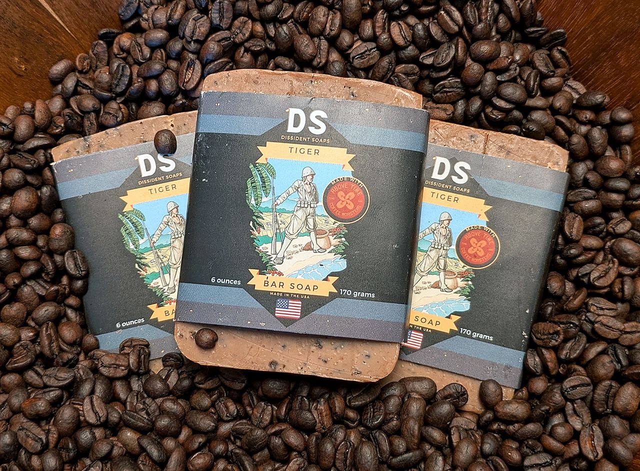 This collaboration between Dissident Soaps and Above Time Coffee Roasters, inspired by the Dutch Royal Netherlands East Indies Army’s (KNIL) ‘TIGER’ Battalion, brings the rich fragrance of coffee and vanilla right into your shower, without the need to face malaria, the plague or rebellious locals. Each bar is no less than 5.9 ounces.